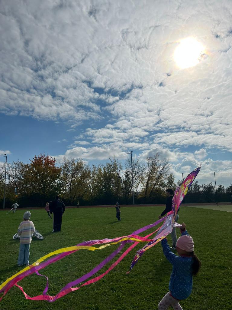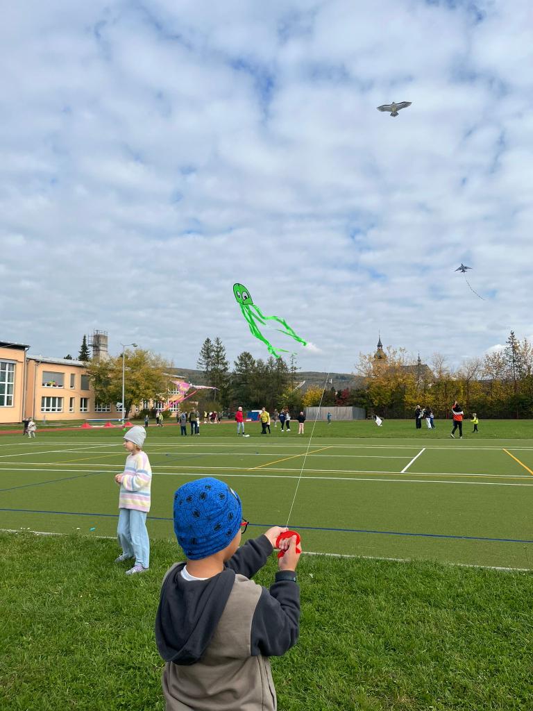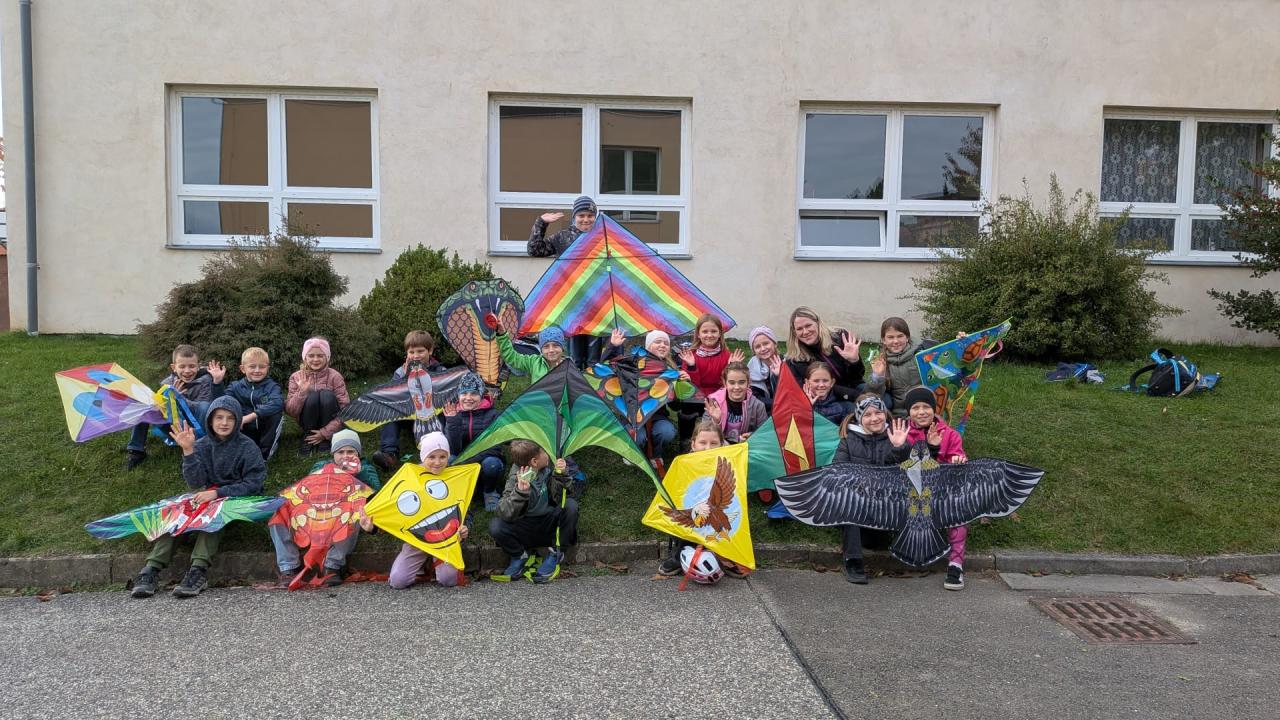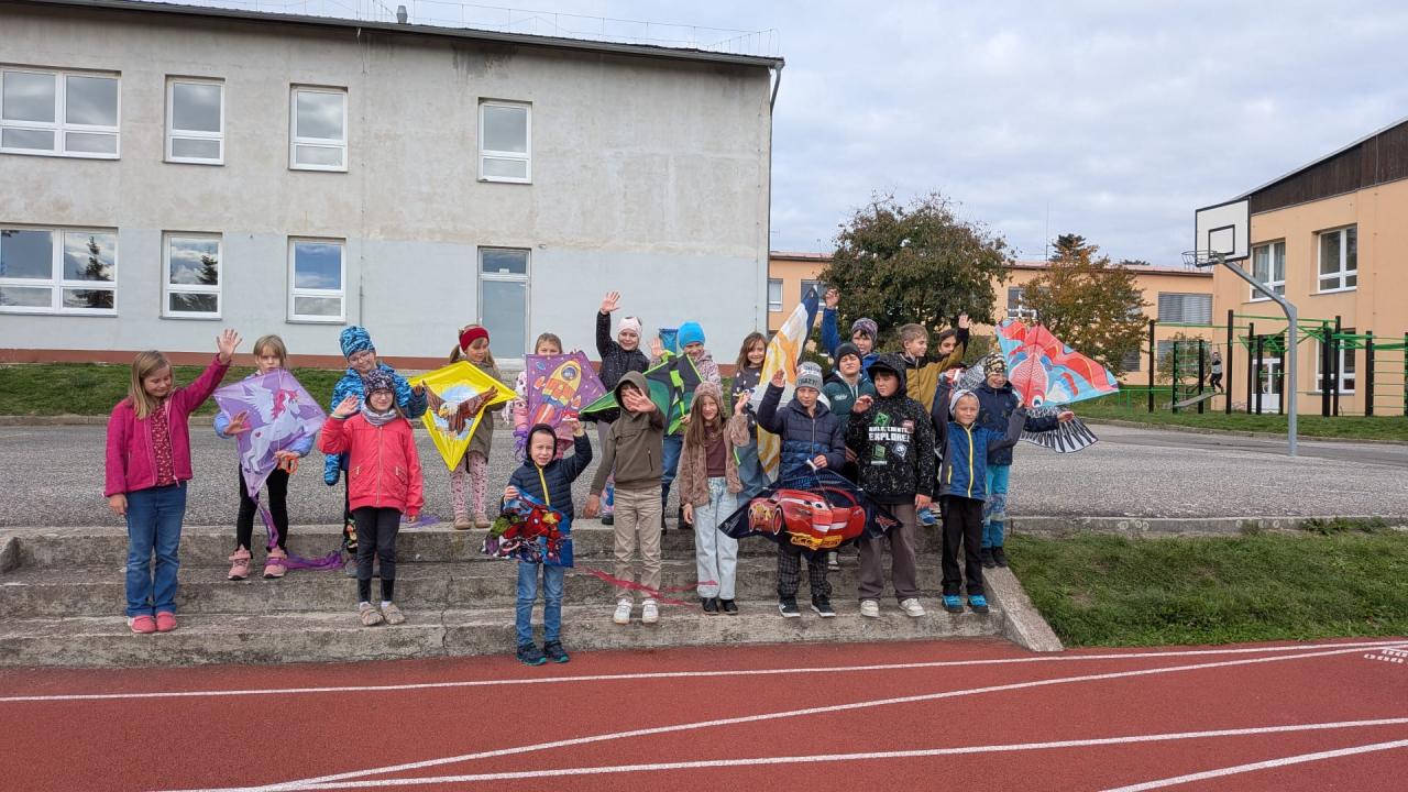 Každoroční drakiáda patří ve školní družině mezi nejoblíbenější akce. Ani tento rok jsme nezaháleli a rozzářili jsme nebe pestrobarevnými draky. Přestože si dal vítr se sluníčkem asi den volna, podařilo se našim letcům vznést draky až do nebes. Děti se opravdu snažily a měly velkou radost i z mírného stoupání. Velkými pomocníky našich nejmenších letců byli žáci 9.A, kteří byli zdatnými navigátory a pomocníky při vzletu. Do oblak se vznášeli orlové, motýli, sovy a jiní pestrobarevní draci. Děti za jejich snahu a spolupráci čekala sladká odměna a výborný teplý čajík, který připravili studenti SOU a SOŠ Velký Újezd. Ještě jednou tedy děkujeme žákům 9.A za pomoc a manželům Čechákovým za čaj. Nesmíme zapomenout ani na rodiče, všem patří velké díky. A příští rok se setkáme zase v oblacích.