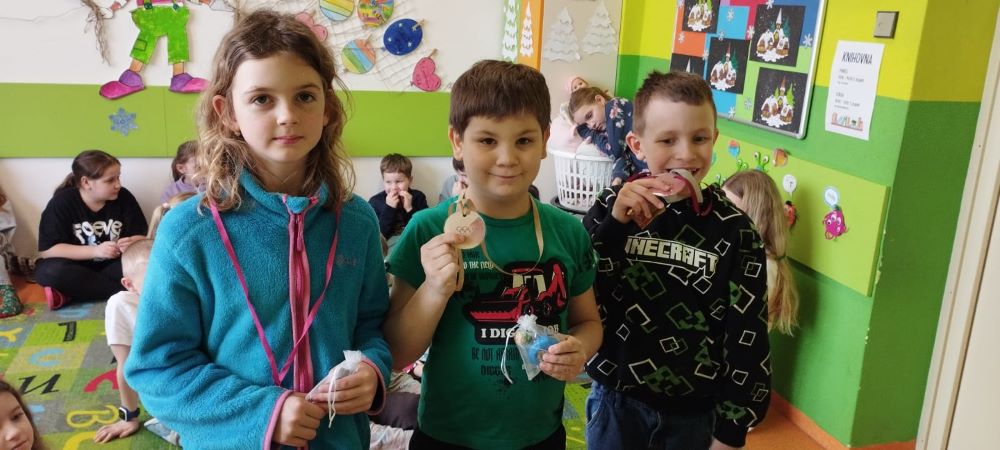 V naší škole i školní družině jsme bedlivě sledovali průběh ZOH a fandili našim sportovcům. Ve třetím oddělení školní družiny jsme si i v rámci ZOH zasoutěžili v pěti disciplínách, které jsme poupravili na naše podmínky. Všichni sportovci podali skvělé výkony a navzájem se podporovali. Na závěr proběhlo slavnostní vyhlášení výsledků. Každý účastník obdržel malou odměnu a ti nejúspěšnější si odnesli medaile. Všem medailistům gratulujeme, nejenom našim malým žákům, ale i sportovcům, kteří reprezentovali Českou republiku na ZOH.