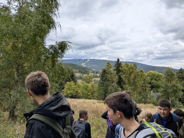 Naše cesta vedla i do Božídarského rašeliniště, kde žáci pracovali s připravenými úkoly a poznávali jedinečné prostředí tohoto chráněného území. Desítky nachozených kilometrů nás zavedly hluboko do krušnohorské krajiny, přes hranice do Německa i zpět, a ukázaly, jak rozmanité a pestré jsou zdejší hory.
