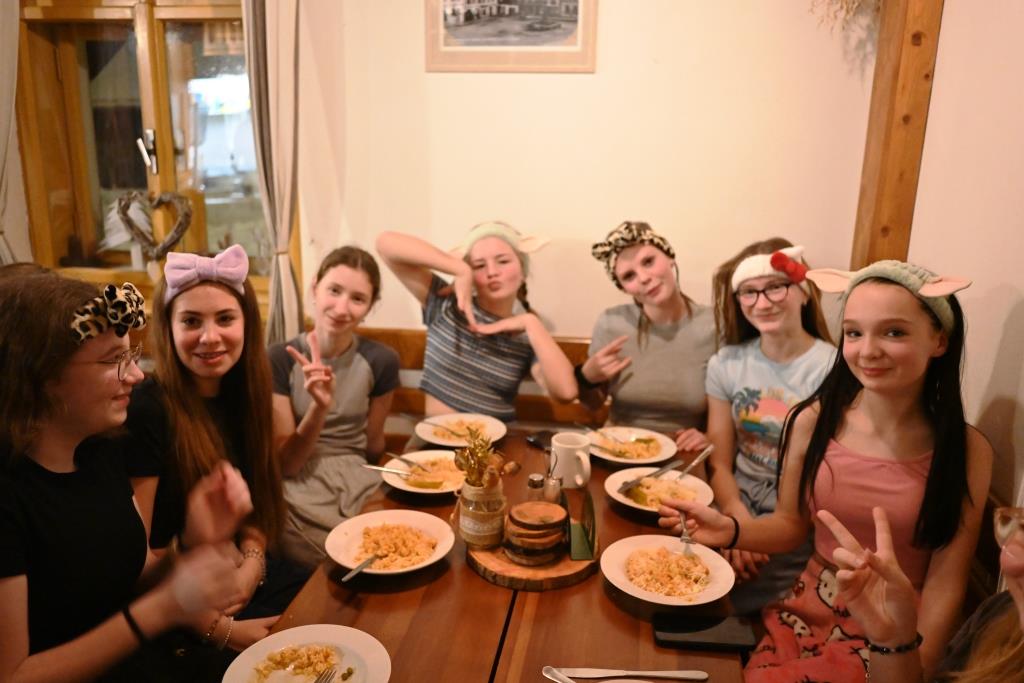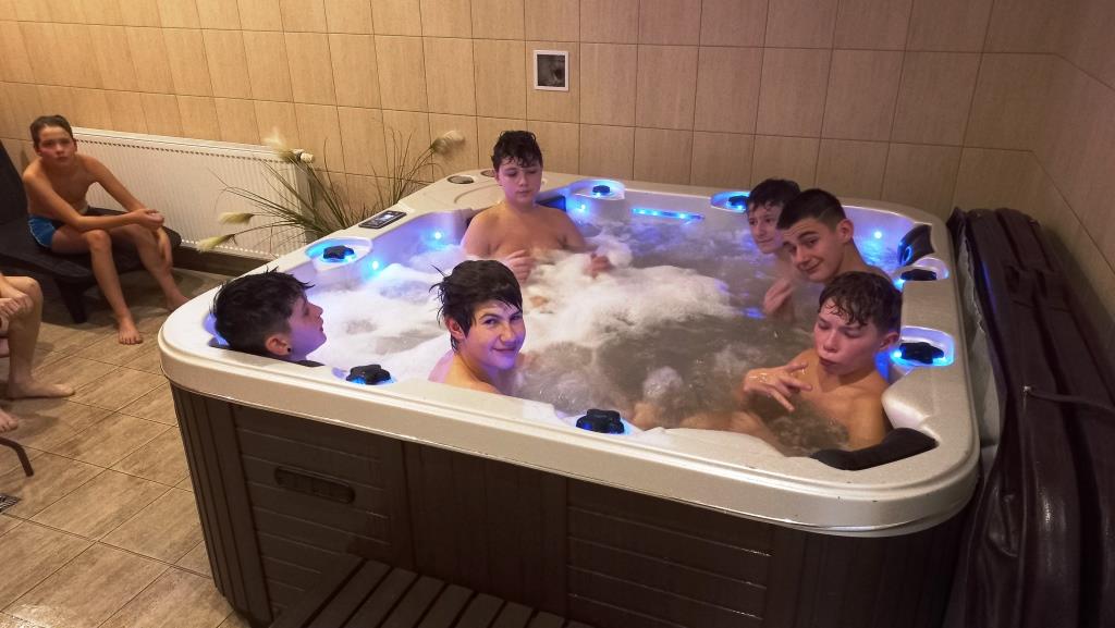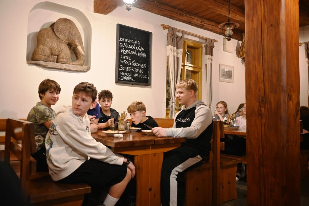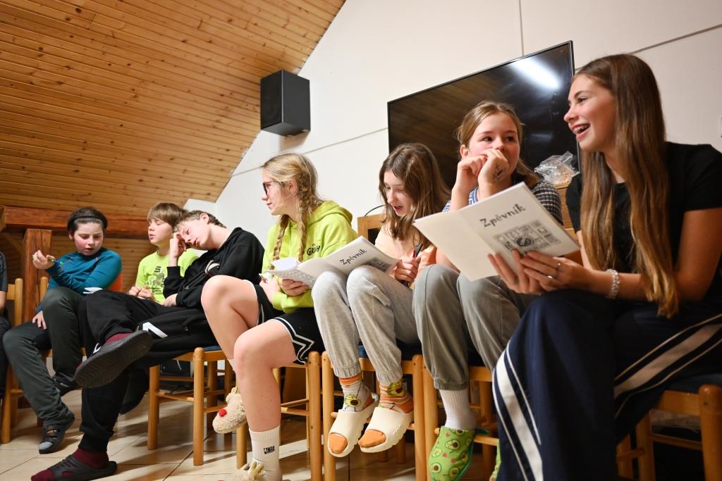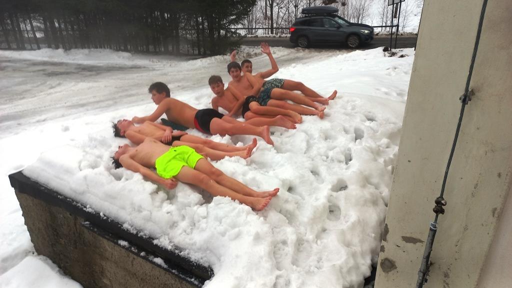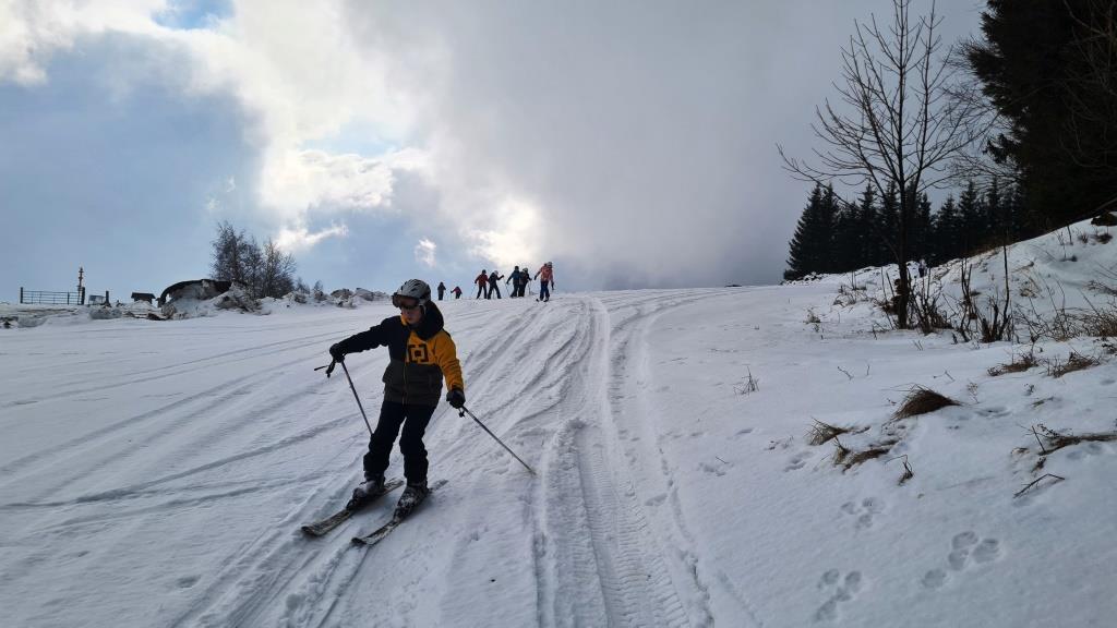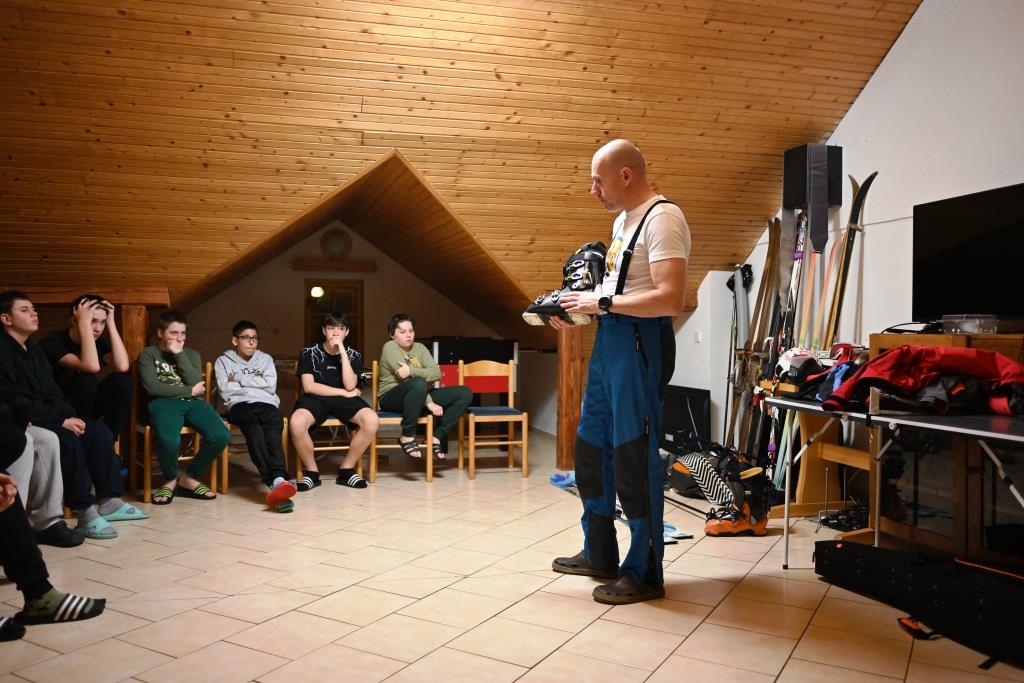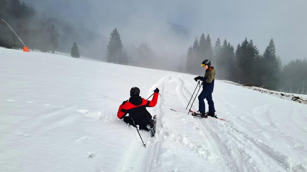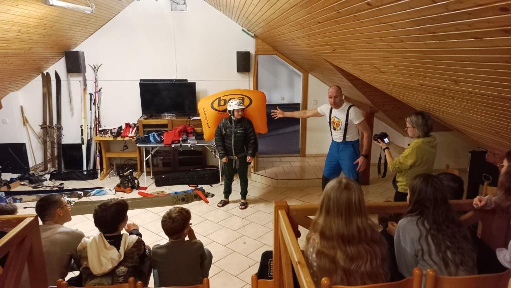 Počasí nám trochu nepřálo, byla skoro celý týden mlha a podmínky pro lyžování také nebyly optimální, dokonce nám poslední odpoledne propršelo. My jsme se však nezalekli, nejsme přece z cukru. Rychle jsme zvládli zmapovat terén a naučili se kličkovat mezi vydřenými místy na sjezdovce. Běžecký výcvik jsme zvládli na výbornou, v mlze jsme se neztratili a v lyžařské stopě jsme dojeli všichni až do cíle. Odměnou nám byla v odpočinkový den wellness zóna se saunou a whirpoolkou, takže jsme mohli zregenerovat naše svaly a pokračovat naplno ve výcviku. Večery jsme trávili společně hraním her a zpíváním s kytarou. Pan ředitel nám odpřednášel a prakticky ukázal různá témata související s pobytem na horách.