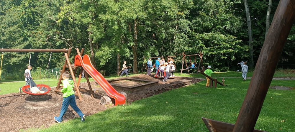 Když nám to počasí dovolilo, odpolední program jsme trávili společně na dětském hřišti. Děti se točily na kolotoči, sjížděly skluzavku, houpaly se na houpačkách a prozkoumávaly lanové centrum. Jelikož nám počasí moc nepřálo, zaměřili jsme se na aktivity v klubovně. Děti pletly kumihimo náramky, malovaly obrázky do soutěže Happy snack, hrály stmelovací hry, a uspořádali jsme i oslavu narozenin.